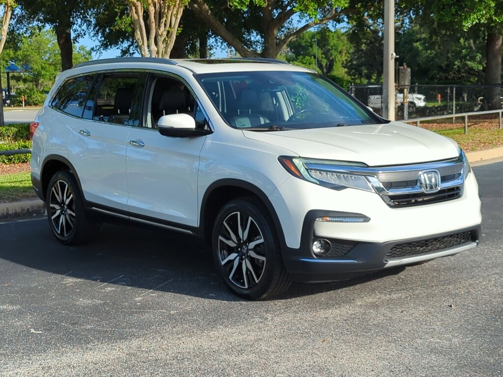 ONLY AT AUTONATION HONDA SANFORD PLEASE CALL 407-323-6100. CERTIFIED This 2019 Honda Pilot Touring 7-Passenger is proudly offered by Autonation Honda Sanford This Honda includes: WHITE DIAMOND PEARL *Note - For third party subscriptions or services, please contact the dealer for more information.* As a Certified Pre-Owned vehicle, this Honda Pilot Touring 7-Passenger offers you the peace of mind because you know it has been rigorously inspected to meet exacting standards. If you're in the market for an incredible SUV -- and value on-the-road comfort and manners more than ultimate off-road prowess or tow capacity -- you'll definitely want to check out this Honda Pilot Touring 7-Passenger. Indulge yourself with one of the most highly crafted, most luxurious automobiles available today. In addition to being well-cared for, this Honda Pilot has very low mileage making it a rare find. Give your passengers the best ride ever with a premium entertainment package. Added comfort with contemporary style is the leather interior to heighten the quality and craftsmanship for the Honda Pilot Touring 7-Passenger. This gently driven vehicle has been well-kept and still has the showroom shine. This Honda Pilot Touring 7-Passenger is equipped with navigation, so you no longer have to wonder if you're headed in the right direction.