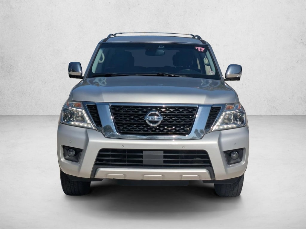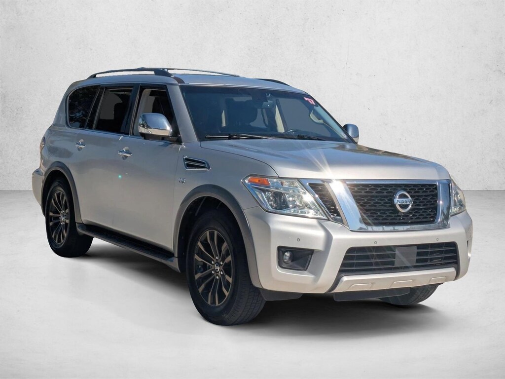 Check out this pre-owned 2017 Nissan Armada we recently got in. This Nissan includes: [M92] CARGO AREA PROTECTOR, CARGO NET [N92] ILLUMINATED KICK PLATES (PIO) BRILLIANT SILVER [B92] ROOF RAIL CROSS BARS (PIO) [C03] 50 STATE EMISSIONS [L92] 2ND Floor Mats *Note - For third party subscriptions or services, please contact the dealer for more information.* In their original incarnation, SUVs were chiefly owned by folks who valued utility above sport. Not anymore! The Nissan Armada Platinum redefines the SUV and makes the perfect all around family companion. Excellence, luxury and stature are just a few of the pillars this car is built upon. More information about the 2017 Nissan Armada: With its 390-horsepower V8, the Nissan Armada is a leader in the struggle for power among full-size SUVs. The engine allows for towing up to 8,500 pounds, all while carrying eight passengers in comfort. Against the likes of the GMC Yukon and Chevrolet Tahoe, the Armada's refinement stands apart, and with several advanced technology and safety features available, buyers can spec their Armada to suit their needs. Interesting features of this model are equally at home on the highway, interior appointments, seating for eight, class-leading power, towing capacity, and Durable and competent off-roader